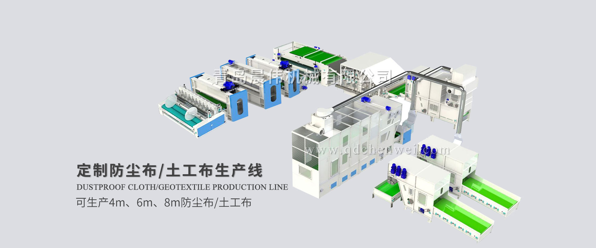 青島晨偉機械有限公司 專業(yè)設(shè)計定制各類無紡布單機設(shè)備及生產(chǎn)線。 我公司主要產(chǎn)品:電子秤重開包機、開松機、給棉機、氣壓棉箱、(高速)單錫林雙道夫梳理機、(高速)雙錫林雙道夫梳理機、鋪網(wǎng)機、中速針刺機、高速針刺機、烘箱/烘房、燙光機、熱軋機、收卷切片機,無紡布設(shè)備、仿絲棉設(shè)備、防塵布設(shè)備、噴膠棉設(shè)備、無膠棉設(shè)備、硬質(zhì)棉設(shè)備、土工布設(shè)備生產(chǎn)線、椰棕床墊生產(chǎn)線、大棚保溫被生產(chǎn)線、蠶絲被生產(chǎn)線、床上用品設(shè)備等各種無紡布機械設(shè)備。