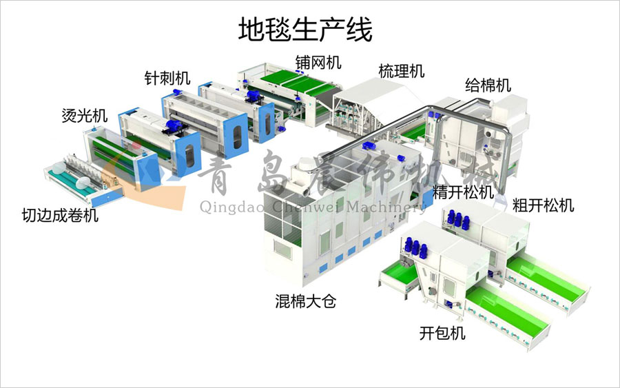 開包機-開松機-振動給棉機-梳理機-鋪網機-針刺機-切邊成卷機