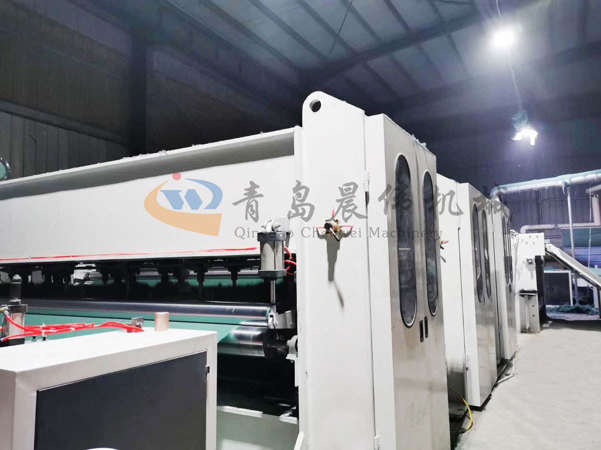 5. CWPW-鋪網機:用于將梳理纖網通過移動小車交叉折疊為所需幅寬和定量的多層纖網,以供后道工序使用。鋪網輥采用特殊結構,加裝壓網輥和導流板,不飄網不起皺,五只大功率電機精確控制各部件的運動,電動輸出簾高度調節裝置