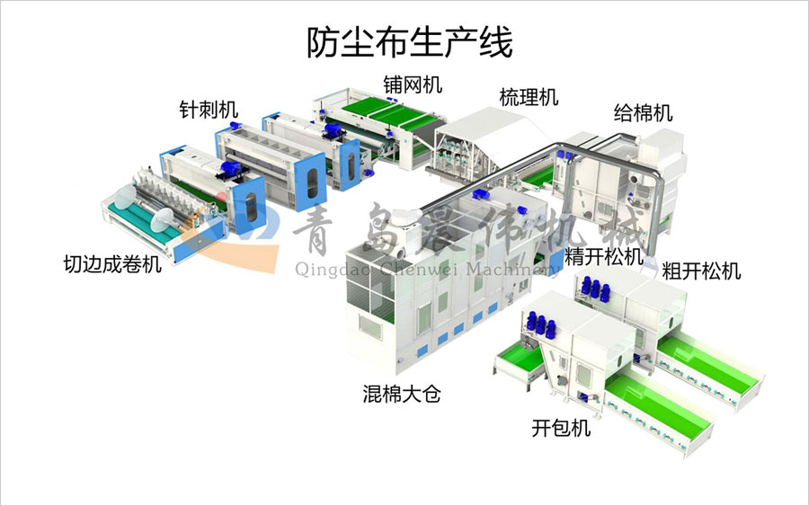 開包機-開松機-振動給棉機-梳理機-鋪網機-針刺機-切邊成卷機